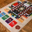 Simon’s idea for a Latin-based game drew inspiration from the Roman mosaics, so ubiquitous in the floors of Roman buildings. Adapting a red black and white tile design, Simon felt that the individual squares could be the playing spaces for his game, the colour coding dividing naturally into Easy vocabulary (white), Hard vocabulary (black) and Grammar (red). Moving around the board was akin to crossing a mosaic floor and would thus add to the immersive experience of playing the game.