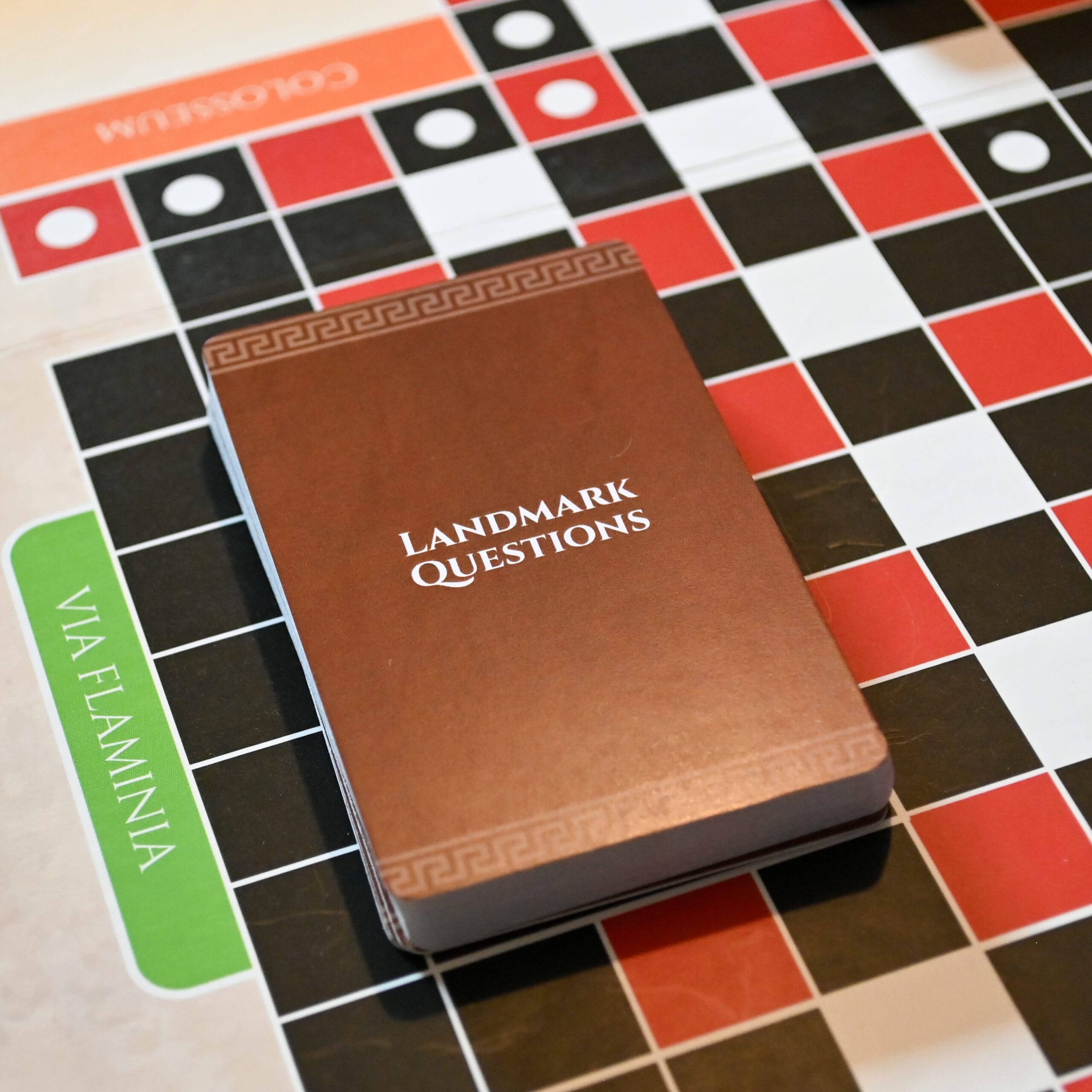 Starting at the Roman Forum, the aim for players is to visit all four of the landmarks and to acquire a souvenir from each by correctly answering questions on either Roman Civilisation or Greek and Roman Mythology, so beloved by the Romans. Only when a player has acquired a souvenir from all four landmarks can they make their way back to the Forum…and win the game!