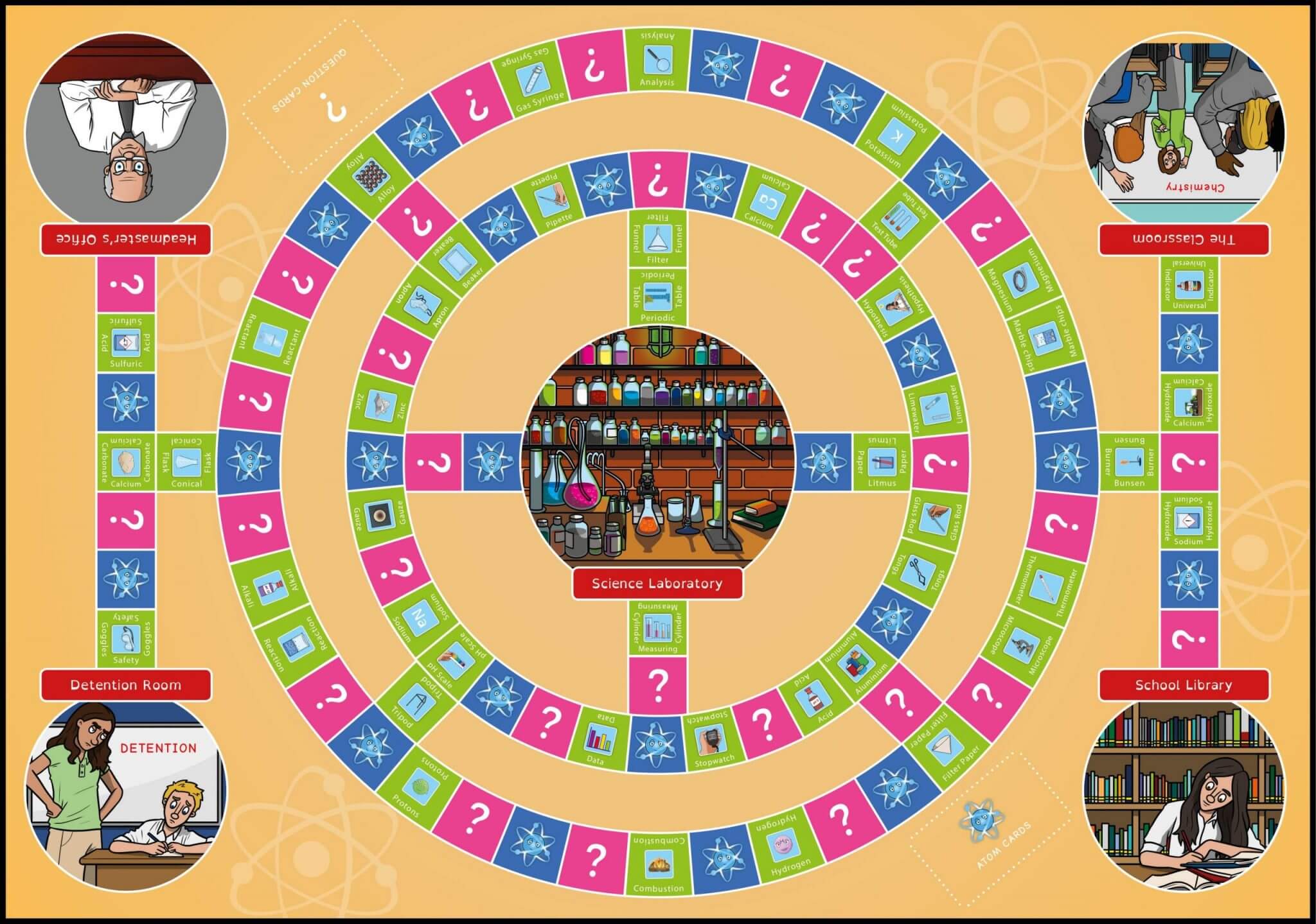 The game involves frantic fun as you make your way around the board to collect the equipment cards needed for an experiment, collecting merit points as you go. Along the way you will need to answer chemistry questions but beware of danger in the lab that will stop you in your tracks!