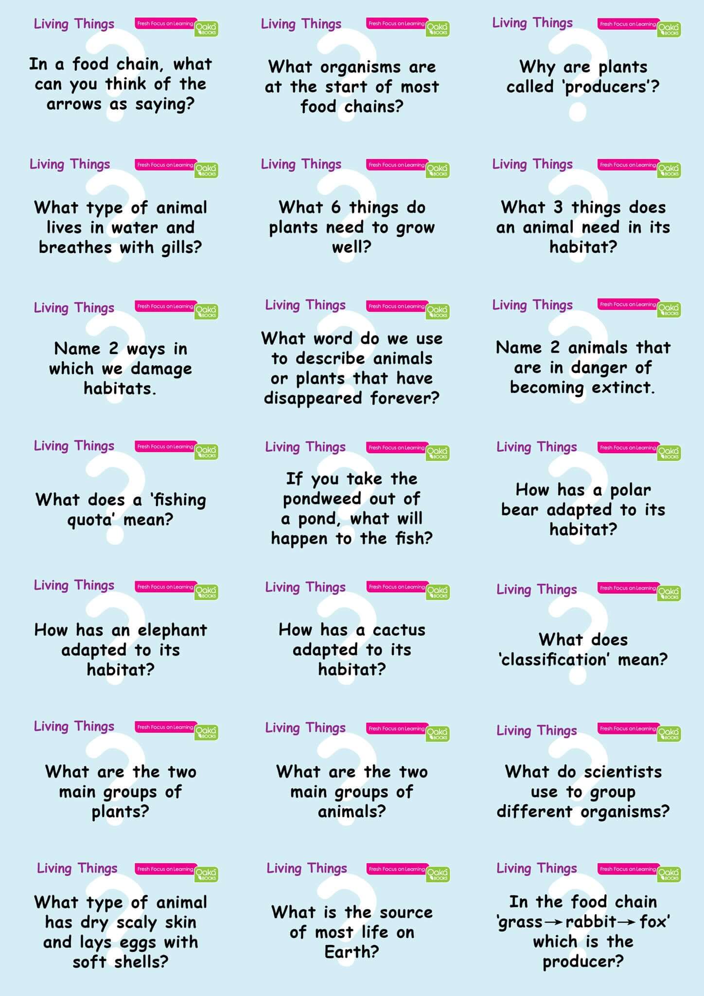 Our KS2 pupils are sponges waiting to soak up information about the world around them! This topic pack on Living Things and Their Habitats is a fabulous starting point for KS2 science, helping pupils gain an understanding of what makes something ‘living’, habitats of different plants and animals, how food chains work to enable nature to ‘work’. It also looks at how plants and animals have to adapt to survive, how we classify organisms so we can study them and how man presents a danger to the environment.