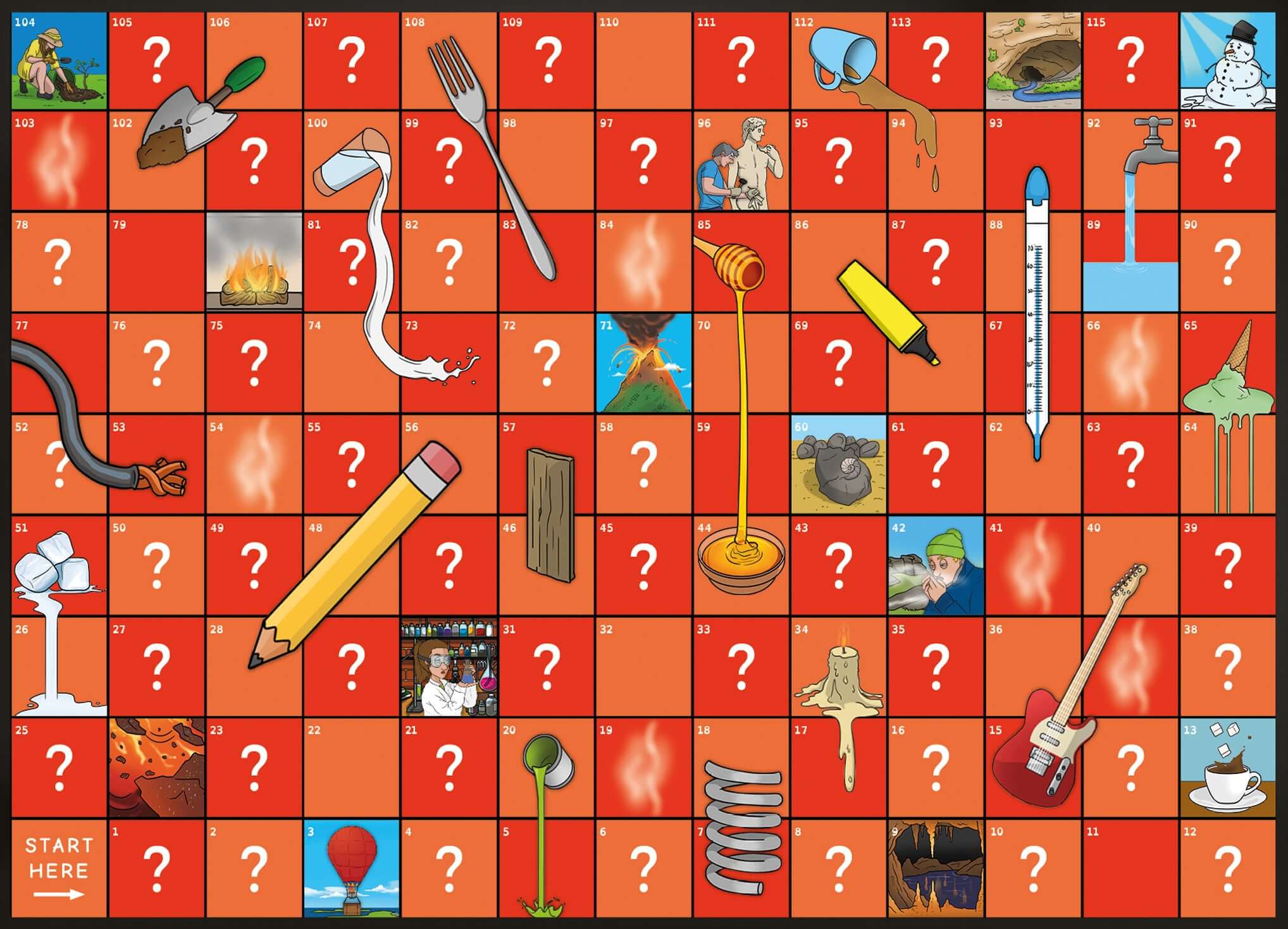 Using active learning, the game involves frantic fun as you make your way around the board, climbing up solids, sliding down liquids and missing a go in gases. Each player has to try and reach Simon the Snowman before he melts!