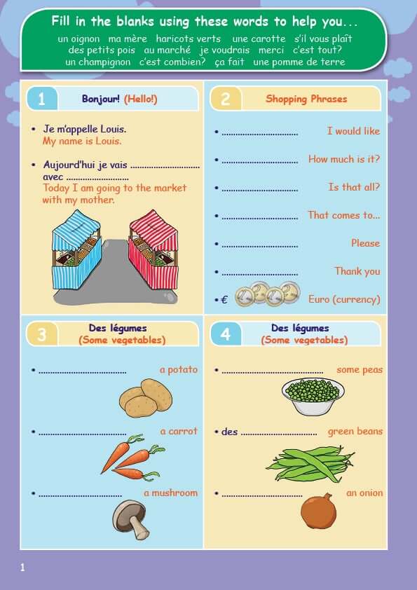 The French love their food and drink and so do we! This pack will help you go shopping for provisions, talk about foods you love (and the ones you hate!). We also look at going shopping and how to order food and drink in a restaurant or bar. You will soon build up a comprehensive list of useful phrases for buying and ordering food and drink.