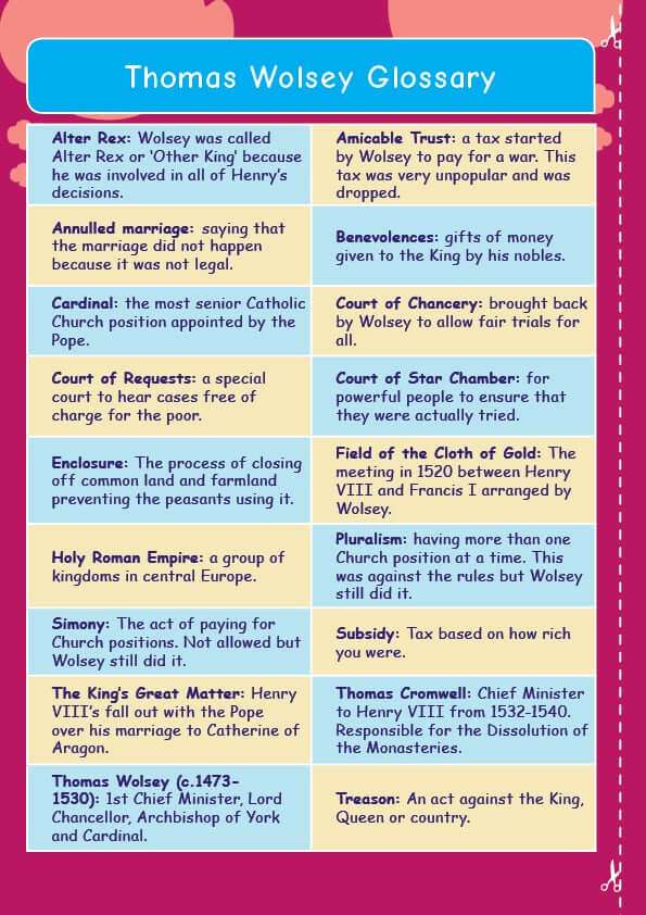 Thomas Wolsey, Henry VIII’s chief adviser, certainly enjoyed a powerful position in the King’s Court. This topic pack gives a fully illustrated account of his rise to power and his influence over the King and his decisions. The active learning map and character cards are perfect to help pupils learn about the effect this had on the country during Henry’s reign.